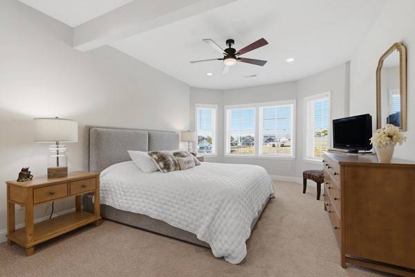 Open floor plan with cathedral ceiling & fireplace in huge great room. Kitchen with custom cabinetry & enormous contrasting island. Soft close,pull outs, Kitchen Aid appliances, 10x10 breakfast area with walls of windows. Awesome butlers pantry with beverage ref. Separate dining room. Large main floor primary with two walk in closets & luxurious bath. Main floor second bedroom, full bath & office. Upper floor has full bath & bedroom & great loft for extra entertainment area. Walk-in closet 21x11. Lower level has GR with wet bar & fireplace, bedroom & bath. Extra areas are for storage23x19 & 28x14(one room) & 21x11; both patio and deck 16x16.Too many upgrades to list- this house has it all & can not be built any where near the list price. Community has so many activities and fosters an active lifestyle. Location is perfect too close to all major roads and shopping.